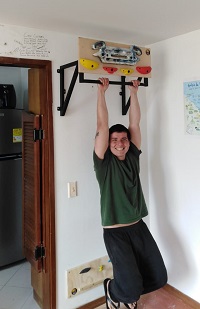 Estructura 2 para Hangboard: Diseñada específicamente para aquellos espacios de pared a pared. Sus 2 barras funcionan para hacer entrenamientos de pull ups, trx y demás. Son removibles y pueden anclarse fácilmente a la pared. Viene con ganchos de sujeción para colgar tu hang board y entrenar en ella.