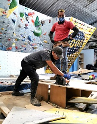 Route setting (armado de rutas para escalar), mantenimiento de los muros y talleres de capacitación.